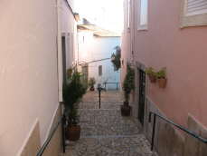 Der Weg führt Sie im weiten Bogen stets direkt an dem Begrenzungszaun des Palastgartens entlang - vorbei an schönen Quintas und alten liebevoll renovierten Landhäusern. Ab und zu ein Blick durch den Park auf die Baumassnahmen am Paláçio Estoi, die uns leider den ursprünglichen Charakter der Parkanlage zu beeinträchtigen scheinen. An der Vorderfront des Palastes (alles noch versperrt und vernagelt) vorbei kommen Sie dann oberhalb der Hauptkirche wieder in den Ort hinein und zwar in das alte historische Zentrum.