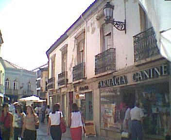 Das Haus mit der manuelinischen Tür wurde in der 2.Hälfte des 18.Jh. neu errichtet. Es hat 9 mit schmiedeeisernen Gittern versehene Fenster im 1.Stock und ist durch Pfeiler in drei "Scheiben" aufgeteilt. Ein Teil des Hauses erhielt ein drittes Stockwerk. Die bei den Bauarbeiten gefundenen Reste aus früherer Zeit (etwa 15./16.Jh.) - eine manuelinische Tür und ein Brunnen - schmücken heute als Blickfang hinter dem Ladentisch die Apotheke Caniné. |