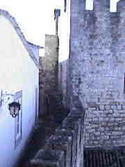 Verlassen Sie das Kloster wieder über den großen Vorplatz und gehen auf der Praça da República weiter bis zur nächsten Querstraße. Sie sehen links in einer schmalen Gasse bereits die Mauern der alten Burg.