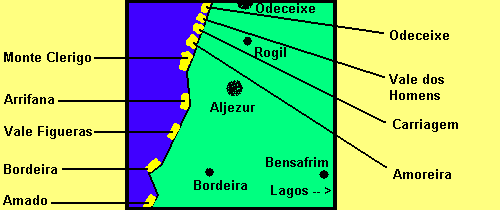 Die Straße zu diesem Strand zweigt in der Ortschaft Rogil von der EN 120 ab.