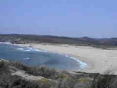 Von der Straße führt ein Holzsteg hinab zum Strand, leider war die Treppe auch Ende September 2000 noch auf