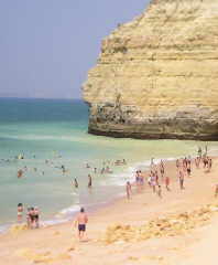 schwer, einen Parkplatz zu finden. Unser Tip: Fahren Sie die Estrada do Farol hoch und biegen rechts zum Algar Seco ab. In Höhe des Atlantiks fahren Sie dann die Promenade ostwärts (rechts ab) bis zur Kirche. Dort finden Sie mit Sicherheit einen Parkplatz und müssen jetzt nur noch zum unterhalb gelegen Strand hinuntergehen.