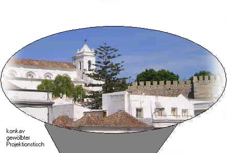 So etwa wie auf dieser Fotomontage erscheint das Stadtbild von Tavira auf der Projektionstisch.