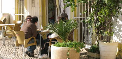 Zurück gehts an verträumten Cafes und der alten im maurischen Stil gehaltenen Markthalle (bei unserem Besuch um 11.00 vormittags fühlten wir uns zwar etwas einsam - es war nur noch eine weitere Kundin zugegen. Dennoch - wir haben noch nie so gut eingekauft, das Obst und Gemüse aus Algoz schmeckte vorzüglich.) wiederum durch durch die Rua da Moinheta.