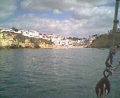 Nach dem Verlassen des Arade (linkerhand das im Privatbesitz befindliche Fortaleza de São João und auf der rechten Seite das Fortaleza de Santa Catarina) geht es ostwärts an der Steilküste entlang - vorbei an den Stränden Praia Pintadinho, Praia Caneiros, Praia Paraiso bis die Ortschaft Carvoeiro auftaucht - ein wohltuender Anblick, da einer der wenigen Küstenorte ohne Hochhausbebauung!
