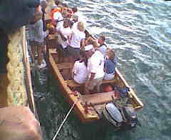 Hier werden die Bootspassagiere wieder an Bord genommen und die 2. Hälfte der zunächst an Bord der Karavelle verbliebenen Passagiere ausgebootet.