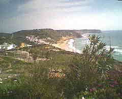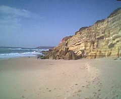 Nun müssen sie wieder bergauf klettern, um zu den Ruinen des Fort von Figueira zu gelangen. Viel ist von der Befestigungsanlage nicht mehr übrig, Sie sehen Teile der starken Umfassungsmauern und Mauerreste der Räume. Viel beeindruckender ist der weite Blick über die herb-gewaltige Küste und den unterhalb des Forts liegenden Strand " Foz da Benacoitão" (grosses Bikd rechts oben).
