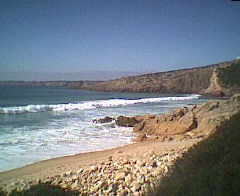 Wegen des starken Windes - sehr zur Freude der Dutzenden von Surfern,die sich im Wasser tummelten - war der Strand bei unserem Besuch am 25.2.2002 nicht vollständig begehbar. Wir mußten schweißtreibend den Berg hinaufsteigen und dann gemächlich bergab bis zum Ende des Strandes gehen. Erschrecken Sie nicht, wenn ein paar Nackte auftauchen, inoffiziell wird das Strandende zur Freikörperkultur genutzt.