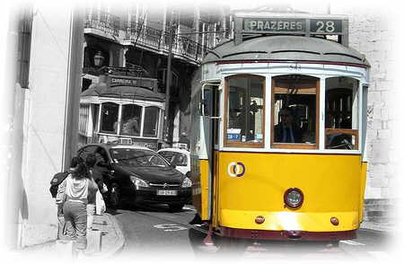 Die Strassenbahn 28 (auf portugiesisch "eléctrico") durchquert Lissabon von Ost nach West. Mit ihr können Sie preiswert an vielen Sehenswürdigkeiten vorbeirattern und - was eigentlich noch wichtiger ist - das Leben in der Stadt entdecken. Da die Linie d i e touristische Attraktion ist, müssen sie immer mit Überfüllung und Wartezeiten rechnen, zumal ein Waggon nur 20 Sitz- und 38 Stehplätze hat. Es geht recht steil bergauf und bergab - ein Spass, wenn Sie einen Sitzplatz ergattert haben. Wer stehen muss, sollte schon einigermassen fit sein.