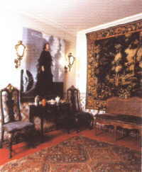 Da die Räume in dem alten Haus, das das Erdbeben von 1755 überstanden hat, mit Kunstgegenständen und schweren Möbeln recht vollgestellt sind, finden nur Führungen in kleinen Gruppen statt. Eine sehr gut englisch sprechende Dame geht mit Ihnen durch die Eingangshalle, das Eßzimmer, zeigt Ihnen das Gästezimmer, den Ankleideraum mit angrenzendem Schlafzimmer sowie das Wohnzimmer. Die Möbel stammen vornehmlich aus dem 18./19.Jh, nahezu überall hängen Portraits der Künstlerin, die ihr verehrt wurden. Im Wohnzimmer füllen Orden und Ehrenzeichen eine ganze Vitrine. Für uns entstand der Eindruck, als habe Amalia schon zu Lebzeiten in ihrem eigenen Museum gewohnt (wir bitten um Verzeihung bei allen glühenden Amalia Verehrern). Natürlich zeigen einige Dinge auch Aspekte ihrer Persönlichkeit: Die vielen Heiligenfiguren in ihrem Schlafzimmer lassen darauf schließen, daß Amalia sehr religiös war. Sie hatte eine Vorliebe für die Farbe rot und liebte Schmuck, insbesondere Brillianten. Mit hohen Plateausohlen machte sich die nur 1,58 m große Künstlerin auf der Bühne etwas "länger".