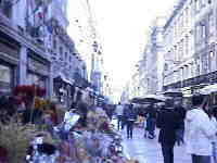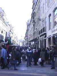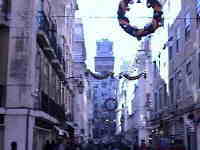 Sie kommen jetzt in die Rua Garret, an deren Ende geht es links weiter bergab durch die Rua do Carmo. Diese beiden Straßen umfassen das Viertel, das als "Chiado" bezeichnet wird. Es gilt als teures,mondänes Einkaufsviertel. Die Fassade der Läden ist oft stuckverziert, die Pflasterung davor vom Feinsten. Die Schäden, die ein 1988 ausgebrochener Brand an der Bausubstanz angerichtet hat, sind mittlerweile behoben. Anstelle des abgebrannten alten Kaufhauses ist ein architektonisch gelungener Neubau (Einkaufszentrum mit Hotel) getreten.
