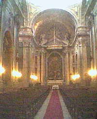 Noch heute beeindruckt neben der Kuppel auch die 2-stöckige Fassade mit den beiden mächtigen Türmen. Die Fassade leuchtet hell mit weissem Alcântara-Kalksandstein. Im Inneren der Kirche befinden sich Skulpturen von Machado de Castro und im barocken Chorraum große Gemälde des italienischen Malers Pompeio Batoni.