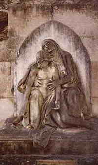 Hinter dem Chor befindet sich Durchgang zum Kloster. Im gotischen Kreuzgang des Klosters aus dem 14.Jht werden Renovierungsarbeiten durchgeführt, ein schönes romanisches Eisengitter stand ausgebaut in einer Ecke. In den Seitennischen des Kreuzgangs stehen Sarkophage, einzelne Ausgrabungsstücke säumen Ihren Weg. Besonders schön ist die Pietà (so nennt man eine Darstellung Marias mit dem Leichnam Jesu Christi auf dem Schoß) am Ende des Kreuzgangs.