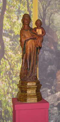 Ursprünglich ganz schlicht, wurde die Madonna 1884 mit einer Krone versehen und mit Edelsteinen geschmückt. Auch das Buch in der Hand wurde hinzufügt.