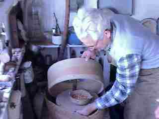 Hier zeigt der stolze Schuster die Funktion einer Maismühle |