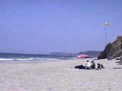 Von der Straße führt ein Holzsteg hinab zum Strand, leider war die Treppe auch Ende September 2000 noch auf