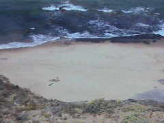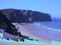 Die ca. 600m lange und bei Flut etwa 50m breite Sandbucht wird von dunklen