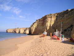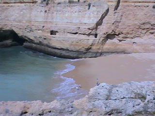 Der Strand ist äußerst romantisch, liegt jedoch morgens und abends im Schatten der Felsen. Dieser kleine ca 100 m lange Strand ist in seiner Art sicherlich einmalig an der Algarve.