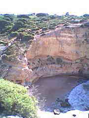 Auf den Klippen liegt ein neu angelegter großer Parkplatz (Achtung: in Höhe der Einfahrt