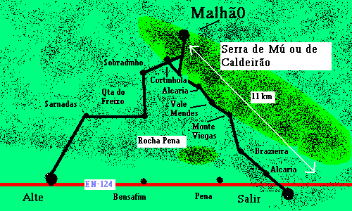 Am Rande der Serra de Mú ou de Caldeirão passieren Sie zunächst das kleine Dorf Brazieira. Die Straße ist hervorragend - frisch asphaltiert und markiert. Langsam wird es kurvenreicher und über Monte Viegas und Vale Mendes gelangen Sie nach Alcaria (Namensgleichheit, s.o.).