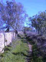 Der Weg wird enger, rechts und links stehen alte Mauern, gesäumt von wohl noch älteren Oliven- und Mandelbäumen. Vereinzelt tauchen Häuser auf, jedoch weit entfernt von dem Weg gelegen, von Wiesen und Bäumen umgeben. Nach einiger Zeit sehen Sie links an einer Parallelstraße die Appartements der Anlage Colina Village, an ihrer Wegstrecke taucht ebenfalls links ein recht großer Rohbau auf. Es folgen kleinere Häuser,durch die die Straße hindurchführt. Sie mündet an einer breiten Asphaltstraße im Ortsteil Poco Partido. |