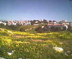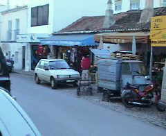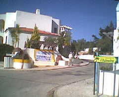 Bald taucht links unterhalb der Straße die Markthalle von Carvoeiro auf. Schräg gegenüber auf der rechten Straßenseite führt eine Straße durch die Ferienanlage "Monte Dourado". Die großen Kachelbilder am Eingang sind nicht zu übersehen. Noch eine S-Kurve und dann gehts relativ steil bergab wieder hinein ins Zentrum von Carvoeiro.