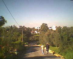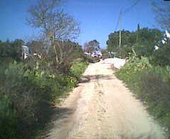 Folgen Sie dieser Straße nach links immer geradeaus über die Kreuzung hinweg in die Urbanisation "Areias Moinhos". Sobald rechts eine neu geteerte kleinere Straße auftaucht, biegen Sie nach rechts ab. An der Abzweigung stehen Hinweisschilder der Firmen "Fa Elfra"und "Alisuper". Jetzt geht es unter uralten Johannisbrotbäumen bergab, der Weg (Bild links) macht mehrere Schlenker und mündet schließlich in eine breite Straße, auf der Sie nach links weitergehen.