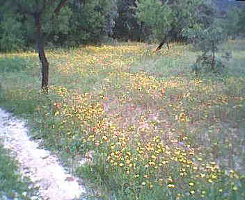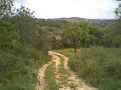 Der Weg wird schmaler, links befindet sich ein Feld, über das Sie über Faro hinaus zum Meer blicken können. Es geht langssam, aber stetig bergan; der jetzt schmale Trampelpfad führt durch verfallenen Mauern hindurch und verliert sich bald in der Landschaft; keine Sorge - ab jetzt einfach über Feld und Stein, Zistrosen, und Matosgestrüpp bergan . Nach ca 200 m treffen Sie auf einen breiten, querverlaufenden Weg. An dieser Stelle gehen Sie nach links weiter.