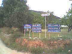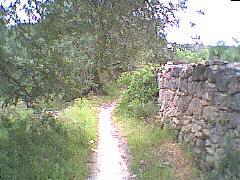Zunächst ist er beidseitig von Steinmauern eingefaßt. Dann wird er etwas schmaler, rechts wiederum eine Mauer, links wachsen uralte Johannisbrautbäume. Der Weg endet in einer Asphaltstraße, an der auf der gegenüberliegenden Seite auffälligen Hinweisschilder aufgestellt sind. Folgen Sie dem Weg zu den "Villas Milreu" und "Casodo Cato" immer geradeaus. Wenn die "Quinta Lampa" auftaucht, gehen Sie weiter geradeaus (nicht rechts ab!).