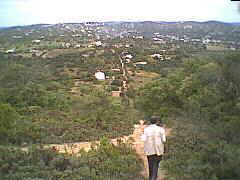 Bald taucht der geodätische Vermessungspunkt in Ihrem Blickfeld auf und es beginnt der steile Aufstieg zum Gipfel. Die zuerst kahle Felslandschaft wird zunehmend grüner - zwischen Sträuchern blüht Salbei, Thymian duftet aromatisch. Der 360° Rundumblick ist über überwältigend. Sie sehen aber auch, wie zerstückelt und zersiedelt die Umgebung von Faro ist. Großflächige Gewächshäuser mit zugehörigen Plantagen breiten sich fast flächendend bis zur Autobahn aus, kaum eine Fläche, auf der kein Haus steht. In der großen Waldfläche westlich von Faro erkennen Sie nur ein paar weiße Punkte. In diesem Gebiet liegen die Luxusanlagen Quinta do Largo und Vale do Lobo. Noch weiter westlich tauchen die Hochhäuser von Quarteira und Vilamoura am Horizont auf. Im Osten liegt der Berg São Miguel mit seinem "Wald" voller Funkmasten, am Meer die Stadt Olhão. |