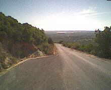Nach einiger Zeit kommen Sie an eine Kreuzung mit 2 Verkehrsinseln, an der eine schmalere Straße nach links zum Gipfel hoch führt; nun ist es ist nicht mehr weit - noch ca 1 km.