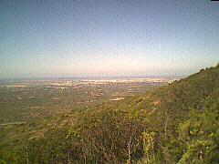 Schon jetzt hören Sie das Sirren und Sausen des Windes in den Drähten der Antennen. Der Blick öffnet sich wieder Richtung Meer. Zuerst sehen Sie wieder die vorgelagerten Inseln, dann taucht im Westen die Skyline von Faro auf. Ganz am westlichen Horizont schiebt sich - bei guter Sicht - Lagos ins Meer. Der geodätische Vermessungspunkt verschwindet fast zwischen dem Gewirr von Antennen (wir haben 2 Fernsehtürme, 6 Antennenanlagen, 1 Telecommast und 1 RDP-Verstärker gezählt).