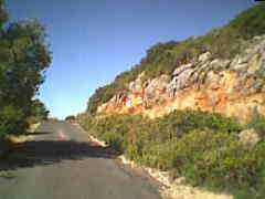 Der Untergrund ist geologisch gesehen sehr interessant - Karbonschiefer, harter Kalkstein - durchsetzt mit schmalen Streifen von rotem Sandstein. Aus diesem Sandstein wird in der Umgebung - so z.B auch in Santa Catarina da Fonte do Bispo - Ton gewonnen, aus dem dann Telhas (Dachziegel), Ladrilhos (Fliesen) und Tijlos (Ziegelsteine) hergestellt werden.