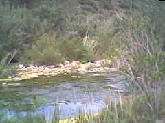 Über den Damm gelangen Sie normalerweise trockenen Fusses auf die andere Seite. Dort links abbiegen und am Ribeira de Quarteira zur Autobahnbrücke und sodann auf bekanntem Weg zur "Fonte de Paderne" und Ihrem Fahrzeug zurückgehen. (Sollte der Damm überflutet sein, was wir zweimal im Frühjahr erlebt haben, bleibt Ihnen nichts anderes übrig, als zur römischen Brücke zurückzugehen.)