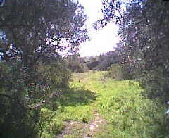 Auf der Anhöhe stoßen Sie auf einen uralten Johannisbrotbaum, dessen Zweige ein großes schattiges Zeltdach bilden. Im Norden sehen Sie den antennenbestückten Berg São Miguel, im Osten ist der Atlantik zu erkennen. Sie können an der Abbruchkante nach Westen weitergehen und kommen dann automatisch über eine Wiese zwischen zwei Häusern in einem grossen linken Bogen auf den Teerweg und sodann wieder auf die Asphaltstraße zurück.