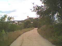 Oberhalb dieser Straße - aber auf der anderen Seite - geht es zurück nach Salir. Nach Überqueren der EN 124 biegen Sie vor einer Ruine nach rechts ab, der Weg schwenkt dann nach links, wird breiter und holpriger und führt von der Hauptstraße weg bergan. Am Horizont taucht ein weiß gekalktes Haus auf, kurz davor führt ein Weg parallel zur Hauptstraße nach Salir. Sie blicken auf den Wasserturm, geradezu schmächtig daneben die Kirchturmspitze. Der gesamte Rückweg ist von hier ab mit einem roten und weißen Punkt gekennzeichnet. Zunächst kommen Sie zu einer kleinen Ortschaft. Die Straße ist ab hier asphaltiert und führt mitten durch die Ansammlung von Häusern hindurch.