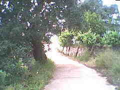 Sie gelangen dann auf einen alten Pfad, der mit ca. 50 cm hohen Steinwällen begrenzt wird. Nach kurzer Zeit kommen Sie an eine Kreuzung, hier biegen Sie rechts ab. Sie stoßen dann auf eine Landstraße, auf der Sie nach rechts (am Dorf Fonte D`Ouro vorbei) weitergehen. Nach etwa 1km taucht auf der linken Straßenseite ein Haus mit einem auffällig eingeritzten Kreuz an der Außenwand auf. Davor führt eine Straße (Wegweiser nach Fujancao) links ab, in die Sie einbiegen. Nach wenigen Metern geht es wieder rechts auf einen breiten Sandweg - an der Wegkreuzung steht ein mächtiger Johannisbrotbaum. Sie wandern jetzt parallel zum Tal durch landwirtschaftlich genutztes Gebiet, rechts und links sehen Sie Orangen- , Mandel- und Olivenbäume. Wenn Sie dem Hauptweg immer folgen kommen Sie - zum Schluß mit einer Biegung nach links - direkt an die EN 124.
