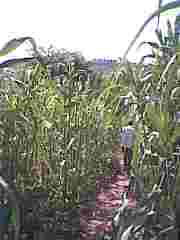 Wenn Sie wandern möchten, nehmen Sie mit dem Auto zunächst die gleiche Strecke am Fluß entlang, halten aber unmittelbar vor der Abzweigung nach Chacopo. An der linken Straßenseite ist eine Ausbuchtung, an der Sie gut parken können. Überqueren Sie den Fluß auf der niedrigen Betonbrücke und gehen Sie geradeaus an einem Bauernhaus vorbei. Sie sehen, daß die Schilfrohtverarbeitung in dieser Gegend eine große Rolle spielt, meterhohe Stangen sind im Garten aufgestellt.